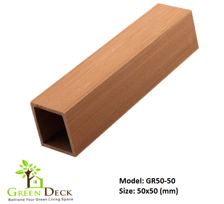 Lam gỗ chắn nắng GR50 được sản xuất từ nhựa PVC nguyên sinh, bột gỗ, vỏ trấu và các phụ gia kết dính đặc biệt |
