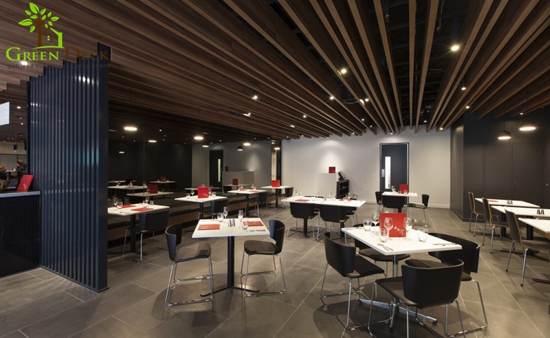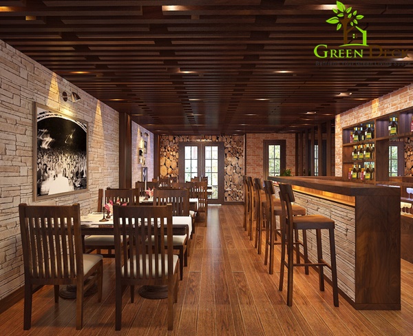 Vật liệu từ lam gỗ nhựa composite có thể tạo nhiều mảng trần, tường rất khác biệt, tạo nên không gian riêng vô cùng ấn tượng và đẹp mắt. Đặc biệt là những thiết kế yêu cầu phá cách hay tạo ấn tượng như tường lam gỗ quán cà phê, quán ba, nhà hàng .....