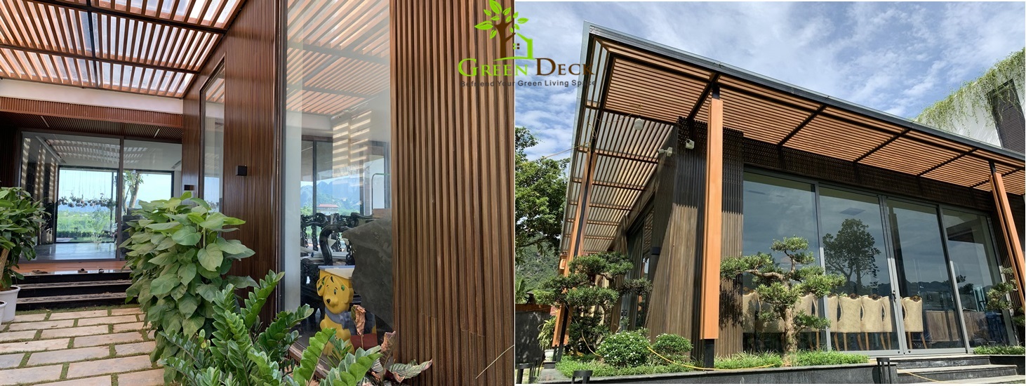 Lam Gỗ Trang Trí Ngoại Thất- Lam Chắn Nắng Greendeck là sản phẩm gỗ hoàn hảo sử dụng trang trí các khu vực ngoài trời/; lam chắn nắng, lam gỗ mái kính, giàn hoa gỗ, bạn công gỗ ... Lam gỗ Greendeck được sản xuất từ Bột gỗ, vỏ trấu, nhựa PVC và phụ gia kết dính trên dây truyền công nghệ hiện đại của Đức, mang đến vẻ đẹp của gỗ tự nhiên nhưng có độ bền vượt trội hơn hẳn các sản phẩm cùng loại.
